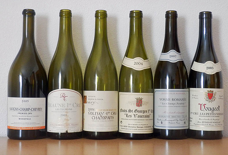 Sechs erstklassige Burgunder der zweith?chsten Kategorie – Premier Cru – aus den entsprechenden Weinlagen von C?tes de Beaune und C?tes de Nuits, allesamt in hervorragendem Reifezustand, gaben eine ausgezeichnete Probe ab: