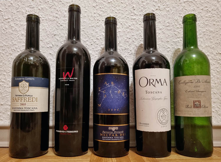 Keine neue Erkenntnis, sollte aber von Zeit zu Zeit ?berpr?ft werden, und das Ganze am besten mit Weinen im vermeintlich besten Alter. Denn entgegen mancher Erfahrungsberichte k?nnen gro?e Rotweine aus Mittelitalien durchaus ein stattliches Alter errichen. Feststellen lie? sich das dieses Mal mit von Cabernet dominierten Weinen.
